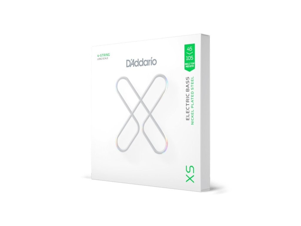 Daddario XSB45105 Regular Light Top/Medium Bottom; sada strun na baskytaru; 045-105; prémiový poniklovaný ovíjecí drát s ultratenkým povlakem; jádro z newyorské vysoce uhlíkové oceli umožňuje, aby struny XS na baskytaru lépe ladily a nabízejí větší pevnost v tahu než standardní baskytarové struny; Vyrobeno v USA; Tloušťky 045, 065, 085, 105; Dlouhá menzura.