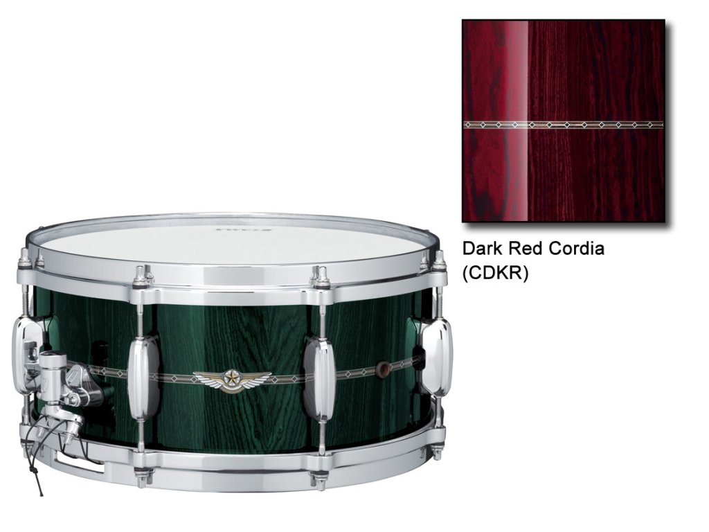 SNAREDRUM 14"x5,5"STAR BUBINGA DARK RED CORDIA TAMA INLAY: NUR AUßEN!,Color: Dark Red Cordia×Size: 14" x 5,5"×Finish: Lacquer (See-Through)×Shell: 4,5 mm, 5 ply Bubinga + 1 inner ply Cordia, 1 outer ply Cordia, with 9 mm Sound Focus Ring×Lugs: One-Piece Lug (MSL90S)×Hoops: Die-Cast (8 Hole)×Strainer: Linear-Drive Strainer &,SNAREDRUM 14"x5,5"STAR BUBINGA DARK RED CORDIA TAMA INLAY: NUR AUßEN!Doplňkové parametry