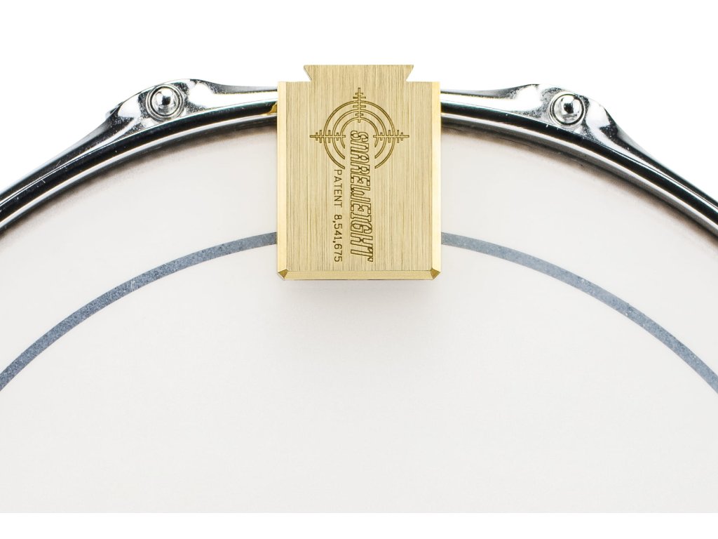 - Tlumení bubnu Snareweight Solid Brass #5 tlačí na blánu váhou tlumítek, která pomáhájí rovnoměrně vyhladit nižší střední vyzváněcí frekvence, kterých nelze dosáhnout jinými způsoby tlumení, při zachování neporušeného tónu.