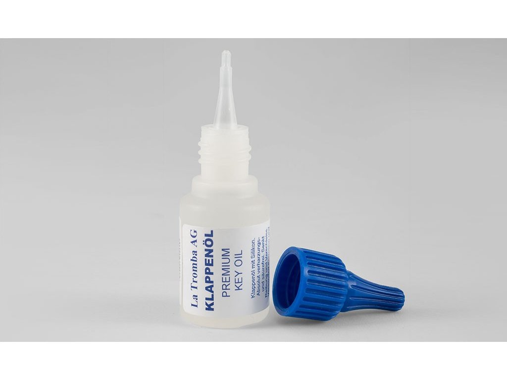 Klappenöl - Key Oil od švýcarské firmy La Tromba AG je mírně hustší olej s příměsí silikonu vhodný pro promazání mechanik klapek všech dechových nástrojů.