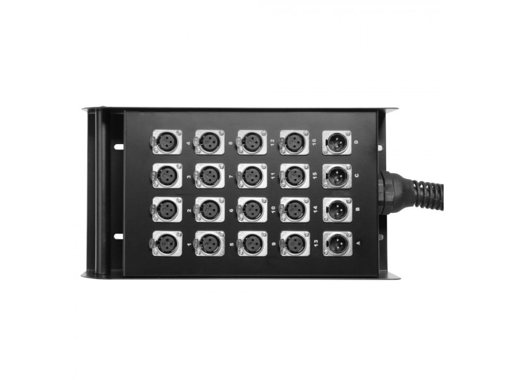 Kabel má 16 XLR vstupů a 4 XLR výstupy.